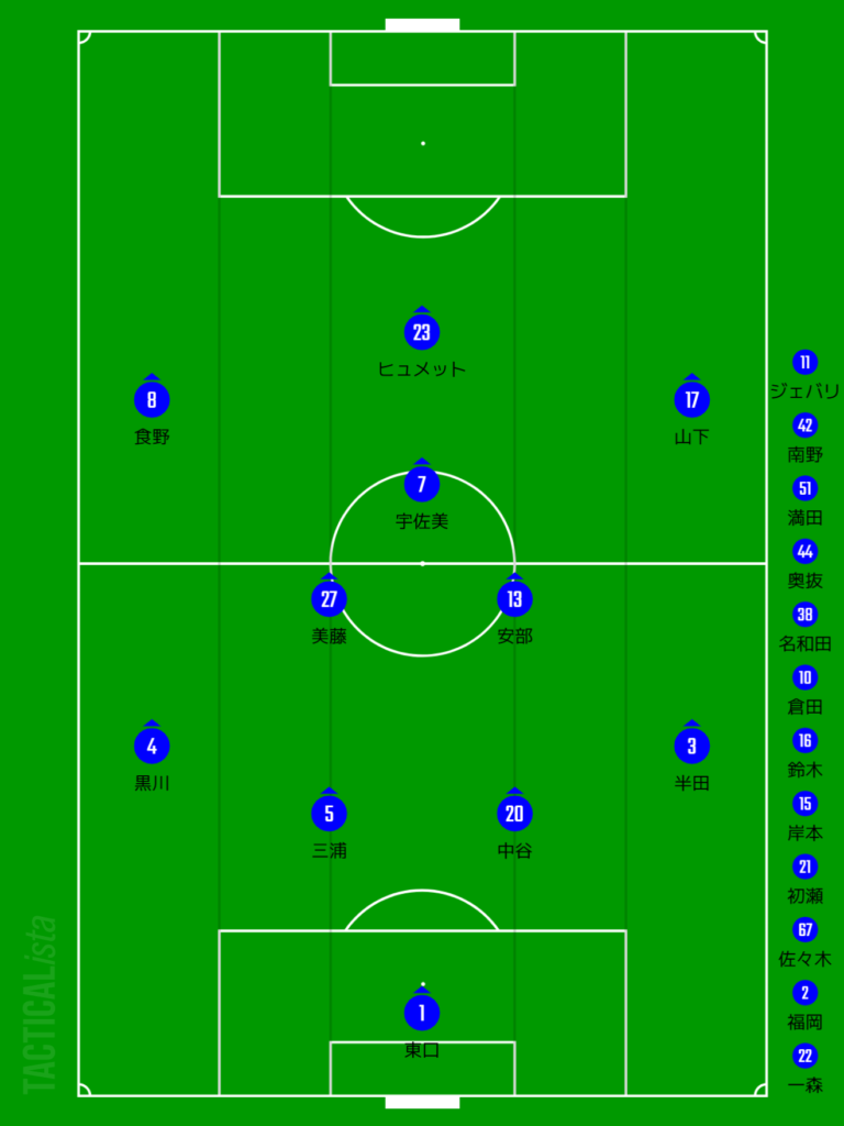 前線は序列が変わった。ジェバリ-満田はリーグに温存。