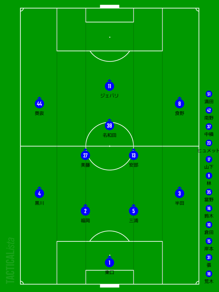 ジェバリ、名和田が両ボランチ脇のスペースを使い