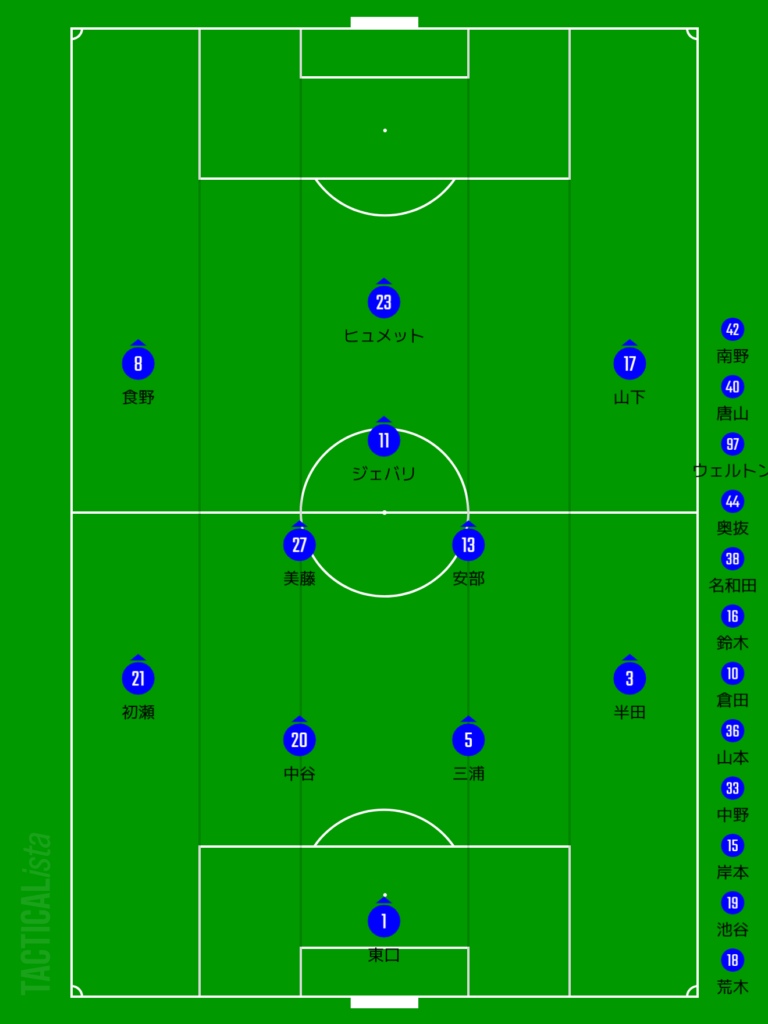 (選手交代)69min美藤→南野、ジェバリ→ウェルトン、77min山下→岸本、83min食野→唐山、ヒュメット→鈴木