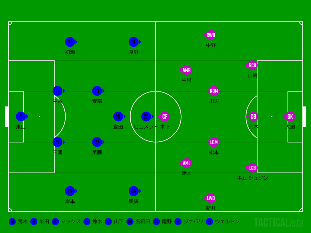 (選手交代)46min食野→ジェバリ、61min安部→ウェルトン、奥抜→山下、76minヒュメット→名和田、86min倉田→半田